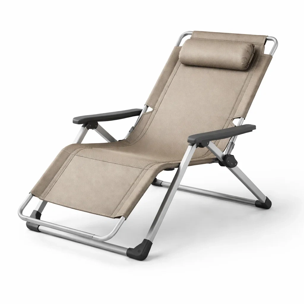 Lettino pieghevole in alluminio e poliestere beige con braccioli